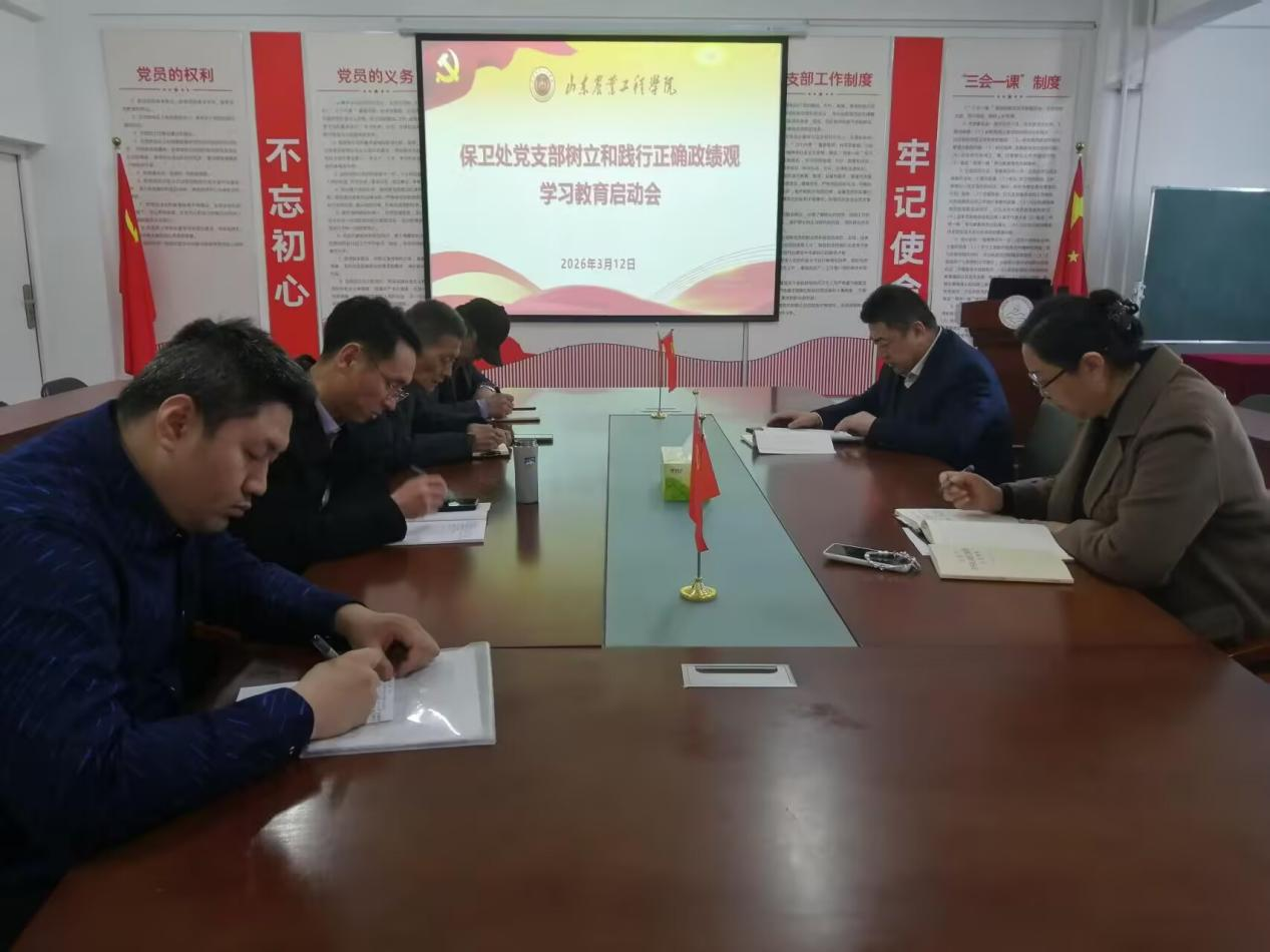 会议传达学习了《中共山东农业工程学院委员会关于在全校开展树立和践行正确政绩观学习教育的实施方案》(山农工党发[2026]4号)的精神,深刻领会“立党为公、为民造福、科学决策、真抓实干”的总要求。会议强调,要提高政治站位,将学习教育与校园安全稳定主责主业紧密结合,聚焦师生急难愁盼问题,以“时时放心不下”的责任感筑牢校园安全防线,以实干实绩检验学习教育成效,为学校高质量发展提供安全保障。