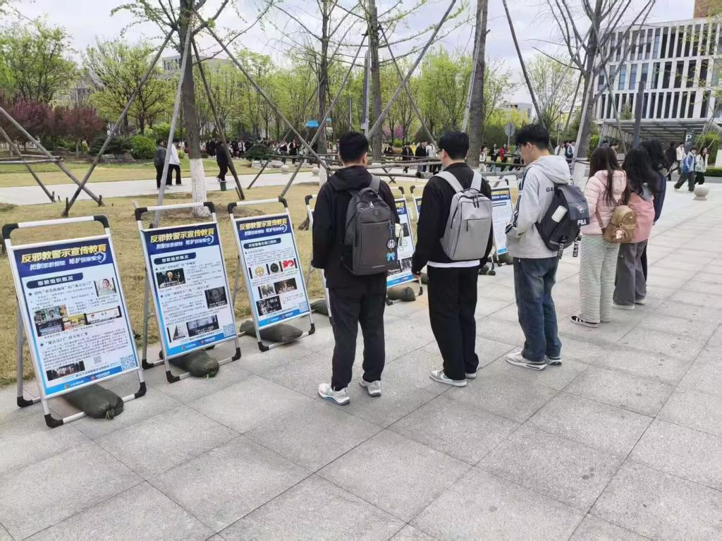 活动前期,保卫处已完成校园全方位宣传布置,营造出浓厚的教育氛围。校园主干道、教学楼、宿舍楼、食堂等人员密集区域,悬挂了宣传条幅,同时,保卫处、党委统战部精心制作了系列主题宣传展板,涵盖反邪教宣传教育、宗教政策、网络诈骗、信息泄露、校园安全防范等典型案例。