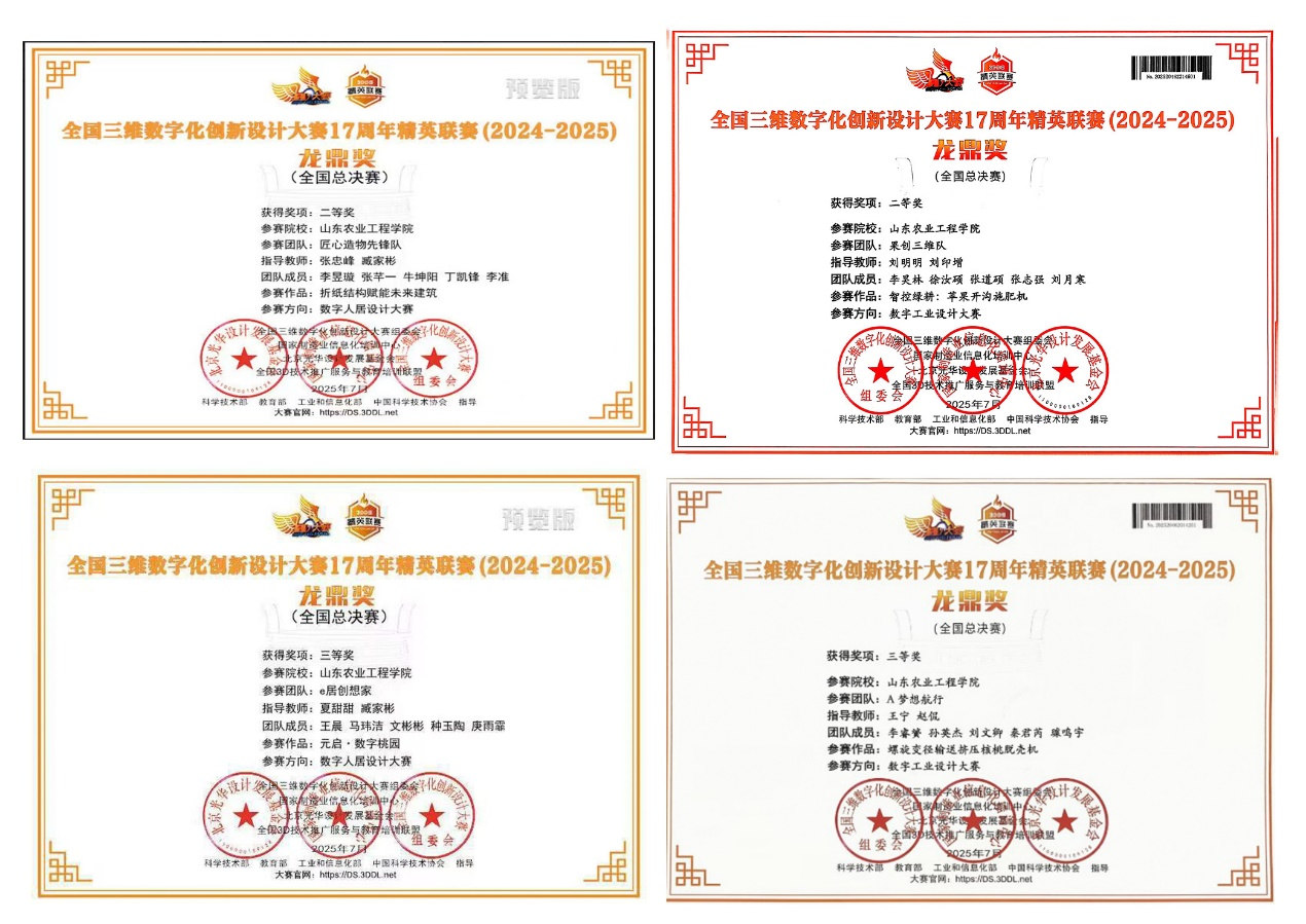近日,由科学技术部、教育部、工业和信息化部、中国科学技术协会等部门联合指导的全国三维数字化创新设计大赛17周年精英联赛圆满落幕。山东农业工程学院师生表现卓越,共荣获国家级奖项7项,省级奖项38项,学校荣获“优秀组织奖”。