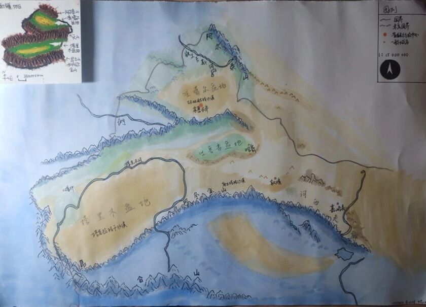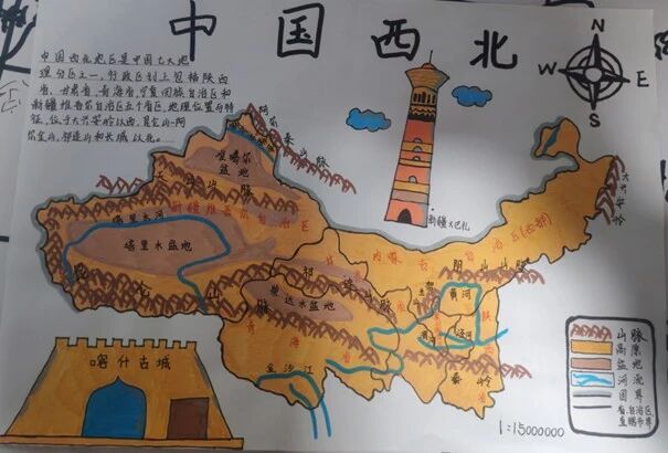 作为学校GIS学科普及的特色品牌活动,本次大赛在传承前七届成功经验的基础上,进一步强化专业导向与实践创新。大赛明确要求参赛作品以中国整个西北地区(或其中省份)为绘制范围,必须清晰标注方向、图例、比例尺三大地图要素,且需以个人形式独立原创完成,严禁抄袭或使用电子绘图工具,充分保障了作品的专业性与原创性。参赛选手自备绘图工具,在创作中既严守地图制图规范,又大胆突破传统表现形式,将地理知识与艺术创意深度融合。
