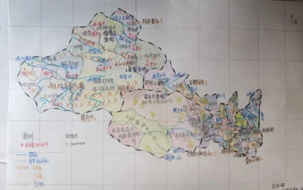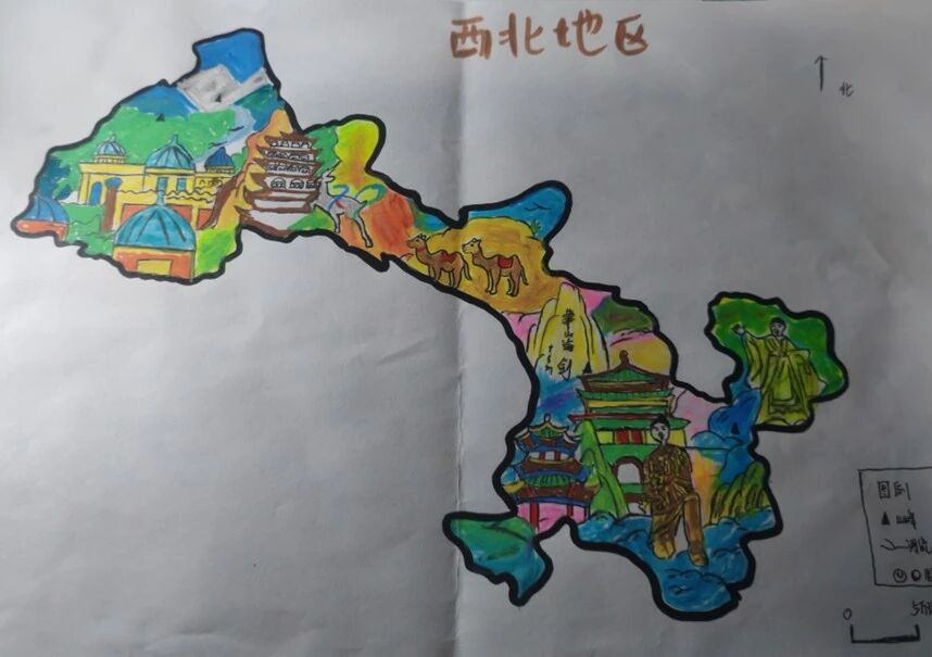比赛中,一批兼具精度、创意与温度的作品脱颖而出:有的精准呈现西北地形地貌、行政区划等基础地理信息,标注生态监测点位、资源管理分区等GIS技术应用场景,还补充2024-2025年最新地理数据并注明来源;有的采用环保颜料、立体贴纸等非传统材料绘图,在地图周边搭配西北民俗、自然景观传说等手绘插画,让地图成为“可阅读的地理故事”;还有的设计自定义专属图例,将作品打造为可折叠便携版本,附上清晰阅读指引,大幅提升实用性。这些作品从内容准确、制图规范、创新性、美观性四大维度展现了参赛学子的专业素养,也彰显了他们对西北大地的关注与热爱。