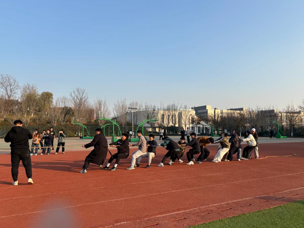 运动会设置了小组赛与个人赛两大类项目,涵盖两人三足、拔河、篮球投篮、点球大战等多个环节。赛场上,同学们热情高涨,配合默契。在“两人三足”项目中,原本互不熟悉的搭档从最初的步伐混乱、频频绊脚,到逐渐同步喊号、默契配合,充分展现了从陌生到熟悉、从个体到团队的转变过程。拔河比赛中,呐喊声与加油声此起彼伏,大家齐心协力、奋力拼搏,现场气氛热烈。投篮与点球项目则让同学们在挥洒汗水的同时,收获了欢笑与友谊。活动从规则解读到现场报名,全程在轻松愉快的氛围中进行。新生们在参与中打破了初入校园的陌生感,逐渐适应了大学集体生活的节奏,也为校园注入了新的活力。