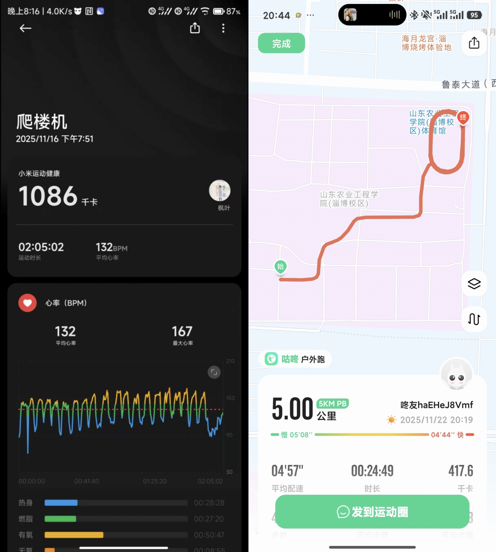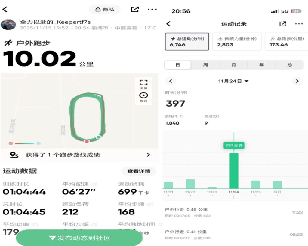 参与学生自主选择运动类型,有氧跑步、力量训练、球类竞技、瑜伽冥想、户外骑行等形式多样,既有利用校园操场、体育馆开展的集体运动,也有在室内完成的个性化锻炼。每日运动结束后,同学们认真记录打卡内容,不仅拍摄体现运动场景或动作的照片,还通过Keep、华为运动健康等APP精准记录运动时长与日期,确保数据清晰可查。
