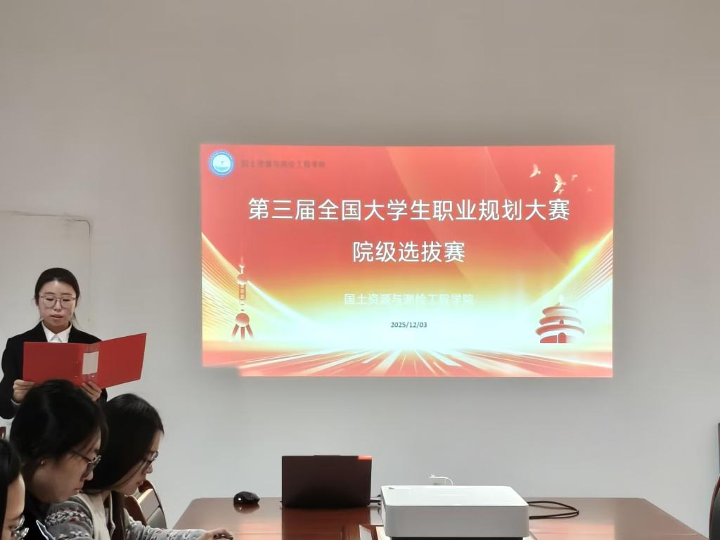 为助力学生锚定职业方向、提升生涯规划素养,为未来职业发展积蓄动能,2025年12月3日,国测学院于理工东C204举办第三届全国大学生职业生涯规划大赛院级选拔赛。本次赛事的评委由国测学院党委副书记李娟及辅导员老师共同担任。
