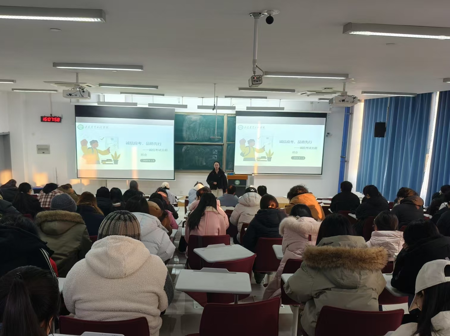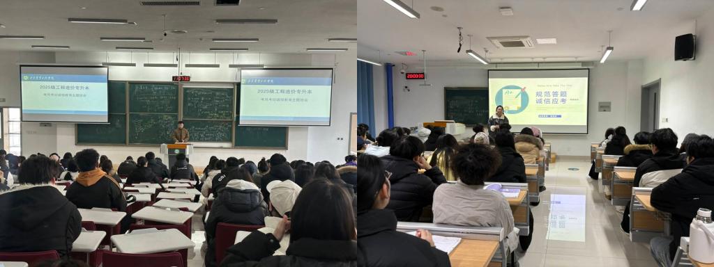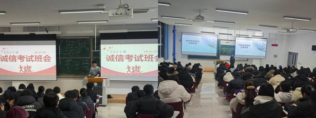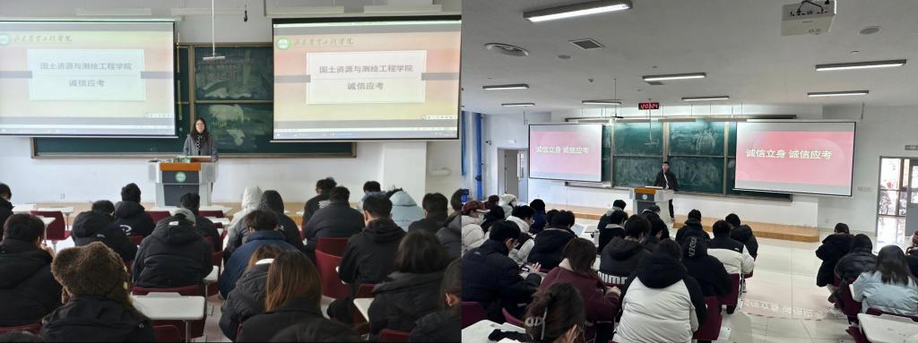 为加强考风考纪建设,筑牢同学们的诚信应考思想根基,在2025-2026学年第一学期期末来临之际,国土资源与测绘工程学院各专业辅导员老师组织召开诚信考试主题班会,学院全体学生参与。