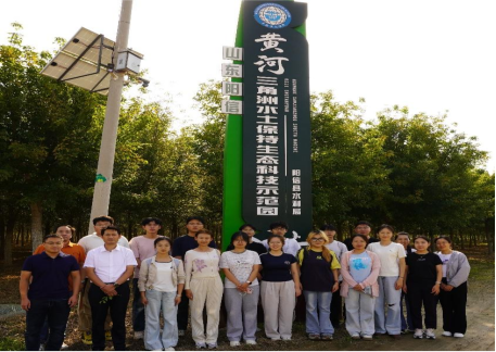 下午,师生团队赴黄河三角洲水土保持生态科技示范园,围绕区域生态建设与林下经济发展情况开展实地调研。在园区内,团队系统了解盐碱地改良的实施路径与阶段性成效,带队教师对园区在生态修复与综合利用方面取得的成果给予高度评价,认为其治理模式为全国同类地区的生态实践提供了重要参考。