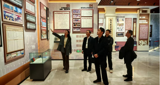 在校史馆,访问团通过珍贵史料与影像资料系统了解我校办学历史与特色成果。张忠峰结合校史关键节点,重点阐释了学校在服务乡村振兴、黄河流域生态保护等领域的实践贡献。嘉应学院对我校深耕应用型人才培养的办学定位给予高度评价。
