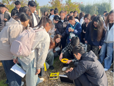 作为本次实践的技术深化环节,师生们精准契合欧洲"哨兵-1号"雷达卫星过境时机,开展了严格的"星地同步土壤参数测量"。同学们严格按照"五点法"布设样点,使用TR-6D土壤参数速测仪进行数据采集,最终获取了与卫星像元尺度相匹配的可靠"地面真值",为评估肥城项目区的土壤改良与生态修复成效提供了直接数据支撑。