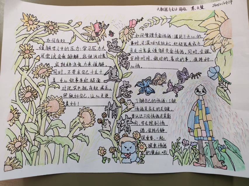 本次活动面向全校学生,鼓励大家用多种形式记录近期的情绪波动与生活感悟。同学们围绕学习压力、人际关系、自我成长等主题,或在绘画中描绘心灵,或在纸上写下真情,将自己内心的情感生动形象的展现出来。评审从同学们创作的多样化表达形式出发,挑选出了一些优秀有趣的作品。