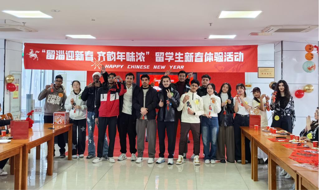 2月12日,我校与淄博新区融合发展中心携手举办“留淄迎新春 齐韵年味浓”国际学生春节文化沉浸式体验活动。来自俄罗斯、波兰、巴基斯坦、阿富汗、哈萨克斯坦等十余个国家的我校及淄博职业技术大学60余名留学生欢聚一堂,在浓浓的年味中零距离感受中国传统春节文化的独特魅力。我校国际教育学院院长门辉华、留校国际学生代表及工作人员共同参与活动。
