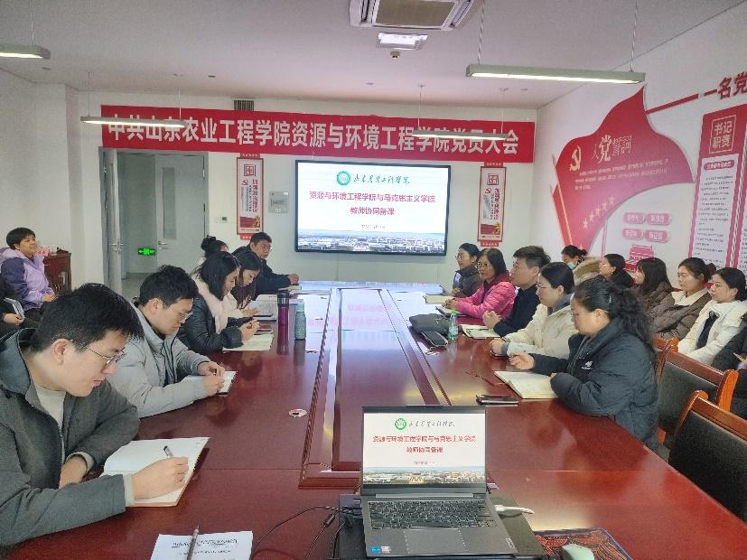 2025年12月4日下午,学院在淄博校区理工西楼A307会议室举办课程思政协同备课活动。学院院长张桂斋及全体教师与马克思主义学院陈钰霖、孟朝老师共同参与本次协同备课活动。