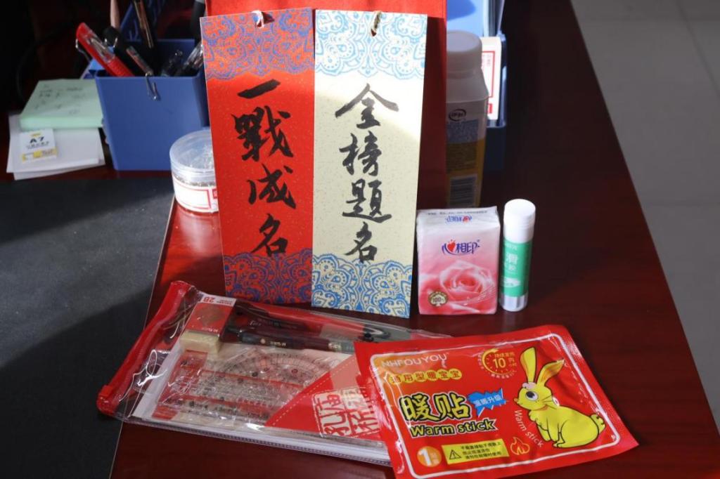 这份“暖心加油包”中的每样物品,皆承载着学院的深切期许与美好祝愿。一张祝福卡片,字字句句书写着“一战成硕”的殷切期盼;一包纸巾,为备考途中的疲惫心绪与备考压力送上温柔慰藉;一支胶棒,助力学子规整复习资料、搭建清晰的知识框架;一片暖宝宝,驱散冬日备考的刺骨寒意,让书桌前的研途时光多了份融融暖意;一套“金榜题名”文具套装,陪伴学子落笔从容、书写研途答卷,将日夜的努力凝于笔尖,把心中的梦想写进考场。这份兼具实用性与心意的礼包,不仅传递着学院对学子的深切关怀,更为漫长且艰辛的研途注入了温暖而坚定的前行底气。