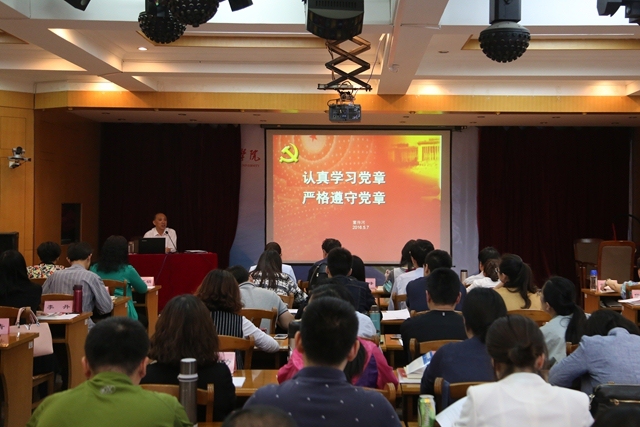 7日上午,在简短开班仪式后,培训班首先对参训党员进行了党的基本知识测试,随后,董传河为参训党员上了题为“认真学习党章、严格遵守党章”专题党课,对开展“两学一做”的重大意义及目的要求,学习党章党规党纪等需重点把握的问题等进行了讲解。下午,全体参训党员观看了中共中央党校刘春教授所作的“学做统一做‘四讲四有’的合格党员”视频专题报告,对“两学一做”学习教育重点有了进一步的明确掌握。随后,开展了分组讨论,在培训班班委、各组长的组织和带领下,每名参训党员都结合各自学习体会和工作实际,从思想认识、党性修养、政治觉悟等方面,谈了对新时期从严治党的认识、个人存在的不足、下一步努力的方向等。讨论结束后,参训党员在培训班班长王建祥的带领下,重温了入党誓词情景教育。5月8日,参训党员根据各自实际,认真学习党章党规和习近平总书记系列重要讲话精神,并就学习中存在的问题,相互之间进行了交流、探讨,撰写了学习心得。