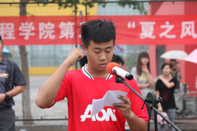 5月28日下午4点30分,山东农业工程学院首届“夏之风”足球联赛在北校区拉开帷幕。副院长张兆明,院团委副书记、北校区学生处处长陈献锋及各系领导、老师和学生300余人参加了本次活动。张兆明副院长为本届足球赛开球,北校区学生处处长陈献锋致开幕词,裁判员代表毛秉斐和运动员代表马浩然分别宣誓发言。