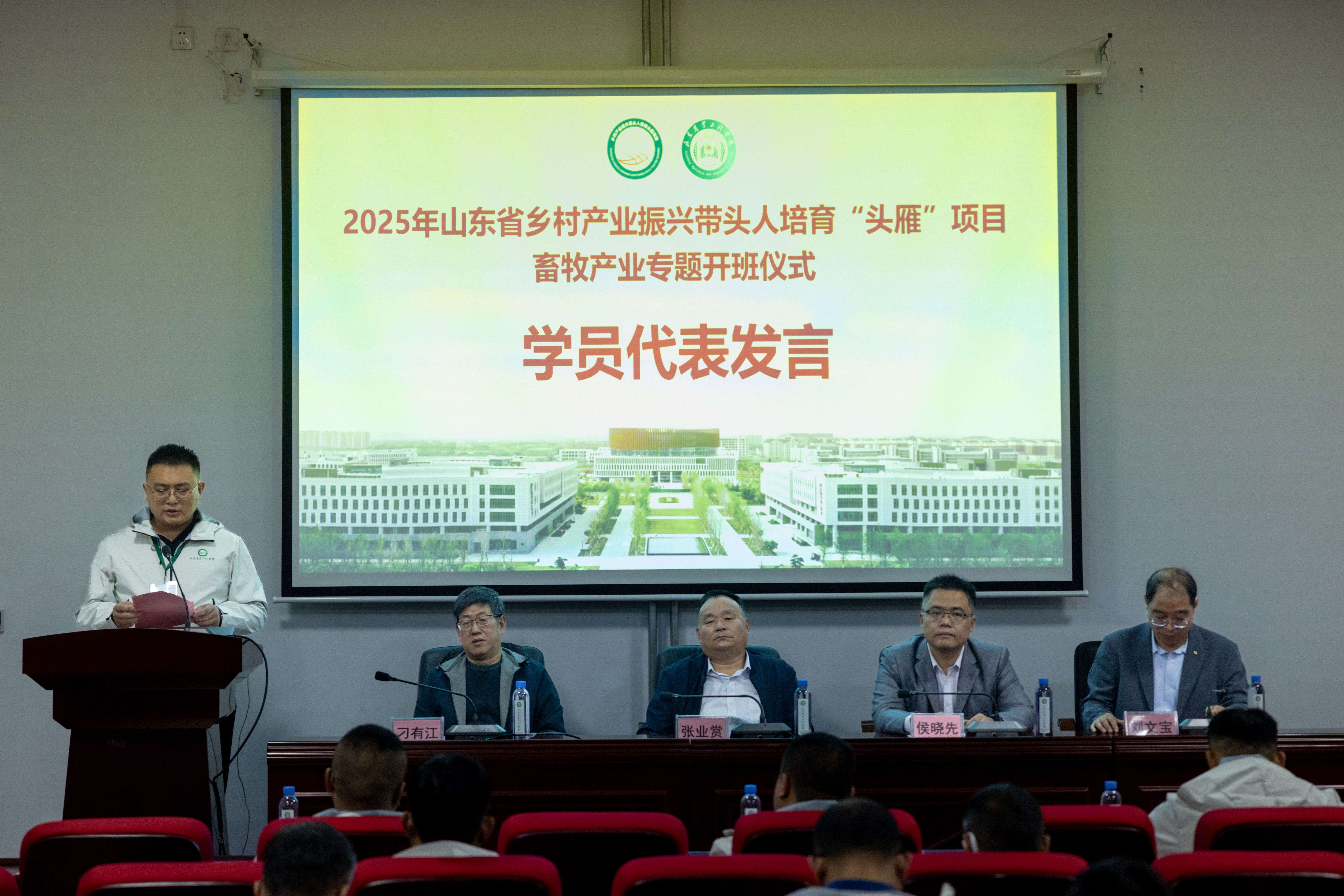 10月15日下午,山东省乡村产业振兴带头人培育“头雁”项目畜牧产业专题培育班在我校淄博校区开班。校党委副书记张业赏,省农业农村厅人事处副处长侯晓先,农业科技学院副院长刁有江出席开班式。开班式由干部进修学院院长刘文宝主持,来自全省各地畜牧产业领域的学员参加开班式。