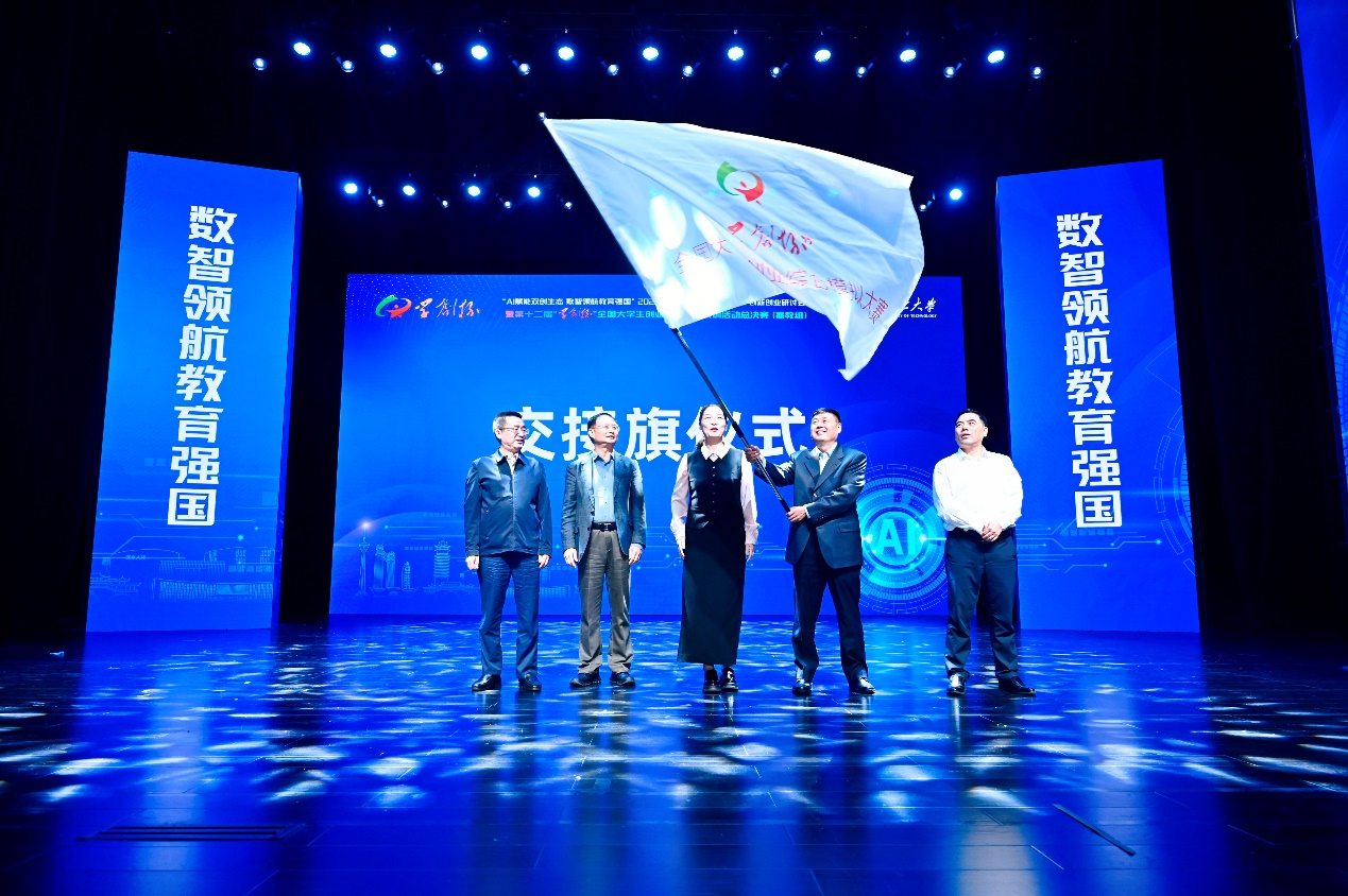 本届总决赛颁奖后,我校正式接过赛事承办权,成为第十三届“学创杯”全国总决赛承办单位,校党委委员、宣传部部长牛化振代表学校接收赛旗,作表态发言。