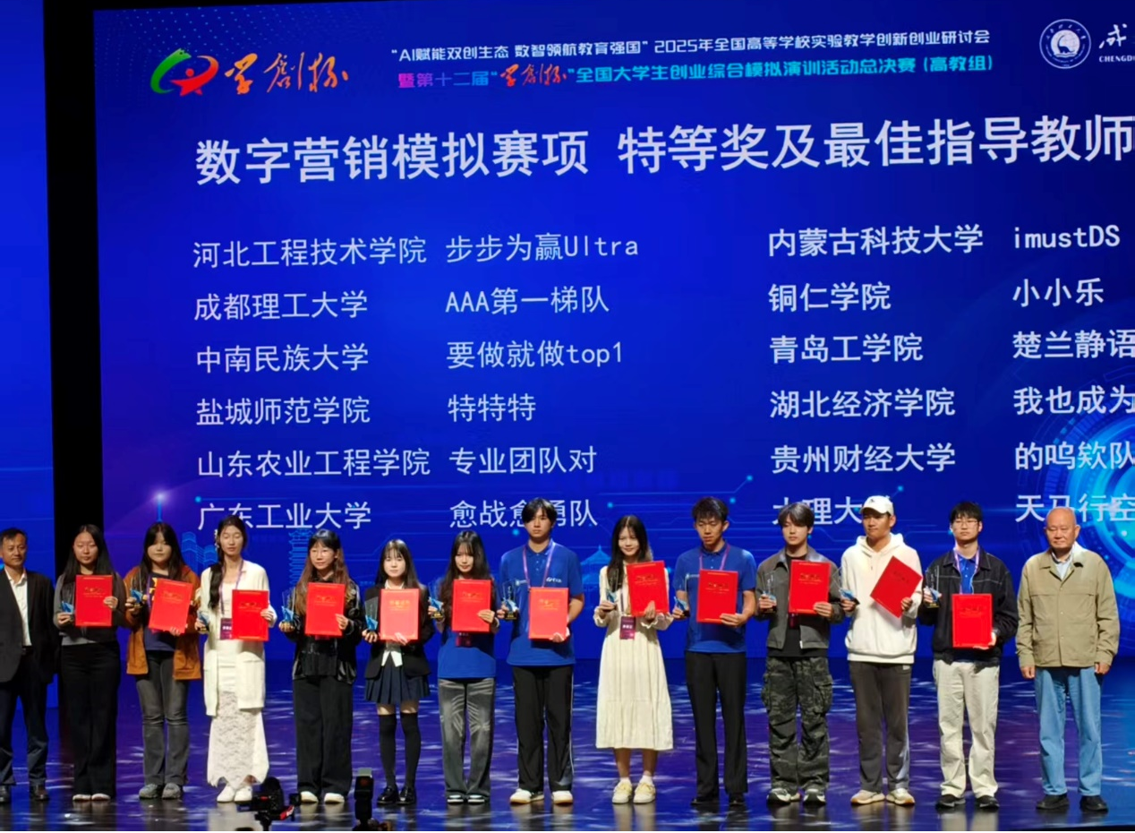 近日,第十二届“学创杯”全国大学生创业综合模拟大赛全国总决赛圆满落幕。本届赛事吸引了全国数百所高校的众多队伍参加,经过激烈角逐,我校经济管理学院2支参赛团队凭借扎实的专业素养与创新实践能力,在创业综合模拟赛、数字营销模拟赛两大核心赛道中脱颖而出,双双斩获特等奖,学校获优秀组织奖。