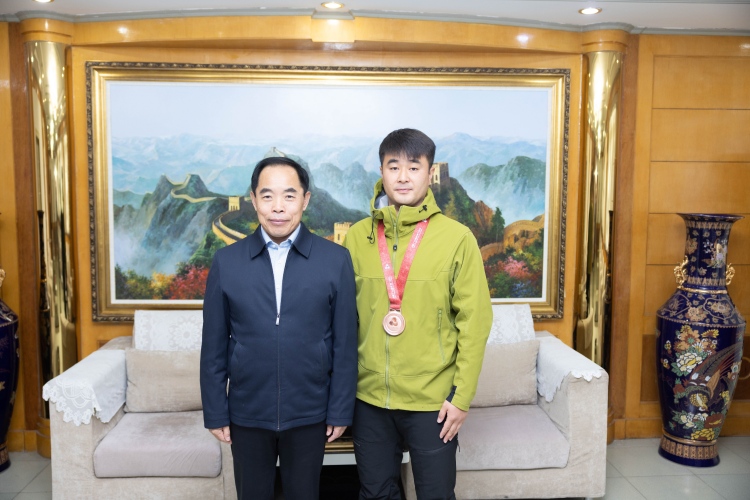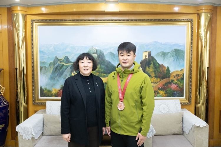 11月27日,校党委书记张鸿波,党委副书记、校长李进京亲切接见参加第十五届全运会载誉归来的闫凯老师。