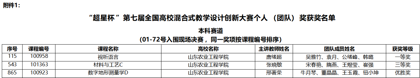近日,“超星杯”第七届全国高校混合式教学设计创新大赛圆满落幕。我校教师首次参赛并斩获多项大奖。其中,艺术学院唐绪超老师获一等奖,张晓敏老师获三等奖,国土资源与测绘工程学院邢著荣老师获优胜奖。