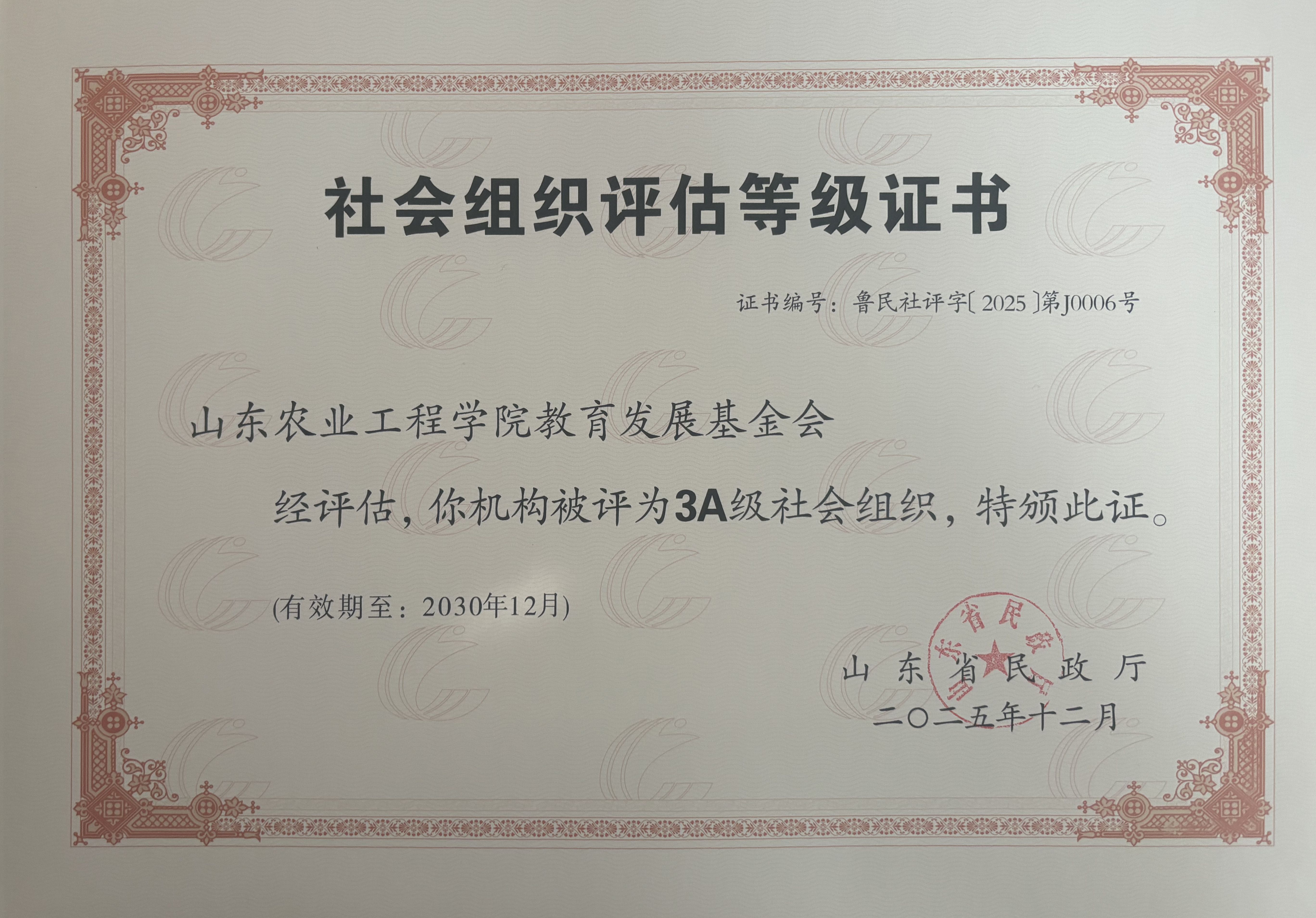 近日,山东省民政厅正式公布了2025年度省管社会组织等级评估结果,我校教育发展基金会首次评估即获评“3A级社会组织”。