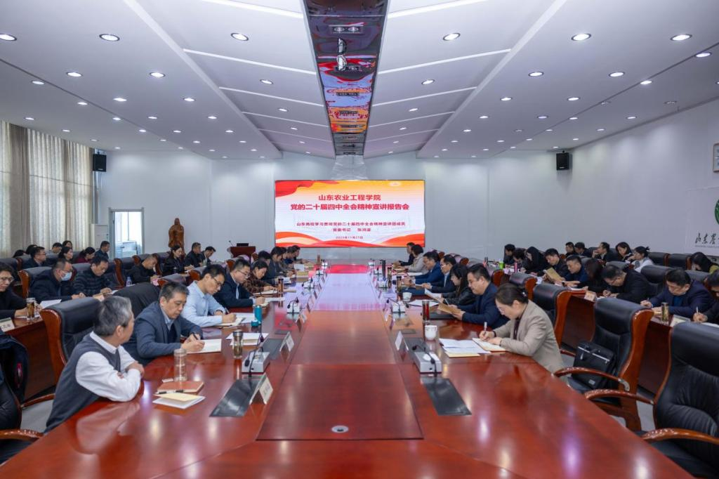 11月27日,学校举行学习贯彻党的二十届四中全会精神宣讲报告会,山东高校学习贯彻党的二十届四中全会精神宣讲团成员、学校党委书记张鸿波作宣讲报告,全面系统阐述了全会的重大意义、丰富内涵和实践要求,部署全校贯彻落实工作。11月22日,党的二十届四中全会精神团中央青年讲师团示范宣讲走进学校,带来一场有温度、有深度的全会精神解读。学校坚持把学习贯彻习近平新时代中国特色社会主义思想和党的二十届四中全会精神作为首要政治任务,不断提高贯彻落实党中央重大决策部署的政治判断力、政治领悟力、政治执行力,切实把广大党员干部的思想和行动统一到全会精神上来,一体推进教育科技人才发展,全面提升应用型人才培养质量。