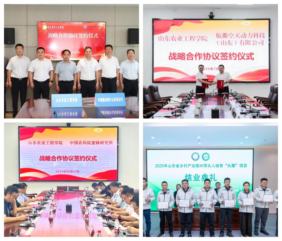 12月23日,我校承办的山东省乡村产业振兴带头人培育“头雁”项目圆满结业。学校立足山东省农业农村现代化发展核心需求,依托资源优势构建起覆盖基层农技服务、高素质农民培育、乡村产业振兴的多维度培训体系,全年培训21个班次,培养1800余人,到账财政资金856万元,为推进乡村振兴战略、加快农业农村现代化提供人才支撑和智力保障。承办第十一届(2025)中国伦理学大会农业生态伦理分论坛,农业发展全面绿色转型理论与技术大会、2025园艺作物机械化生产技术研讨会暨疆鲁苏三地农机学会联合学术年会、第三届农文旅融合赋能乡村振兴论坛等,先后与博山区、郯城县、中国农科院蜜蜂研究所、建设银行山东省分行、航晟空天动力科技(山东)有限公司等签订战略合作协议,与博兴县共建未来厨房装备产业创新研究院,服务社会能力进一步提升,为区域经济社会高质量发展注入新动能。