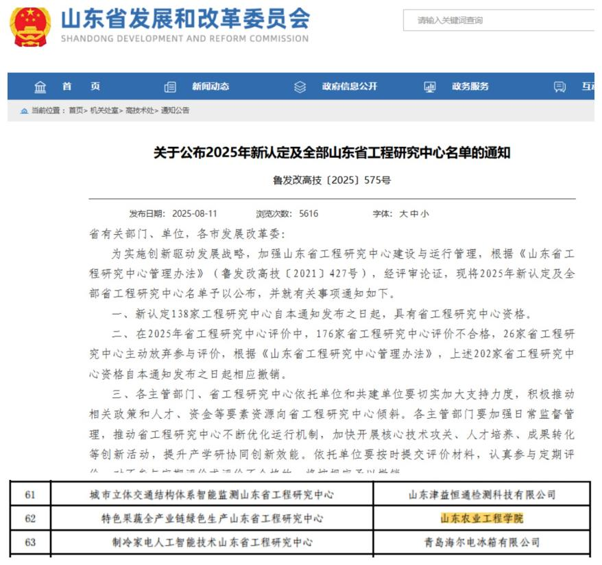 2025年,学校聚焦绿色农业工程特色,通过创新科研管理机制、深化学科交叉融合,推动科研创新实现“量质双升”。全年立项科研项目434项,同比增长13.61%,其中省部级及以上纵向项目50项(提升28.21%),横向项目320项(提升19.85%)。科研立项经费达1.58亿元创历史新高,到账经费首次突破亿元大关,达1.23亿元,同比翻倍增长。科研平台建设与科研成果取得重大进展,首次获批“果蔬全产业链绿色生产山东省工程研究中心”省级科研平台,实现高能级平台零的突破;获省部级科研奖励2项,首位获批厅局级奖励13项,高水平成果数量质量双突破。科技成果转化到账343.8万元,同比增长125.68%,有效推动科技创新成为服务区域振兴的“最大增量”。