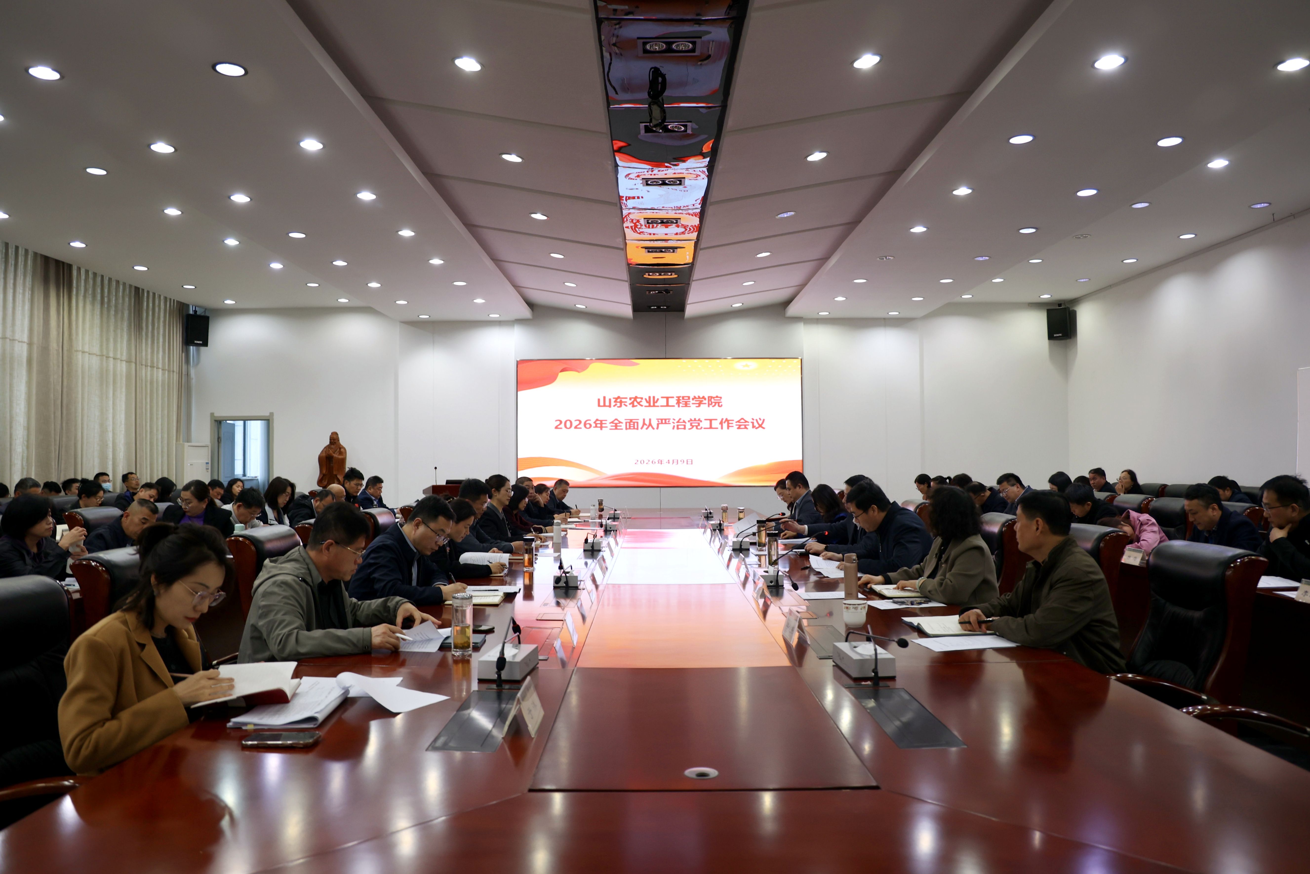 4月9日下午,学校召开2026年全面从严治党工作会议。会议传达学习二十届中央纪委五次全会、十二届省纪委五次全会精神和2026年全省教育系统全面从严治党工作会议精神,总结2025年全面从严治党工作成效,部署安排2026年重点任务。党委书记张鸿波出席会议并作部署讲话,党委副书记、校长王勇主持会议,全体校领导班子成员、全体处级干部参加会议。