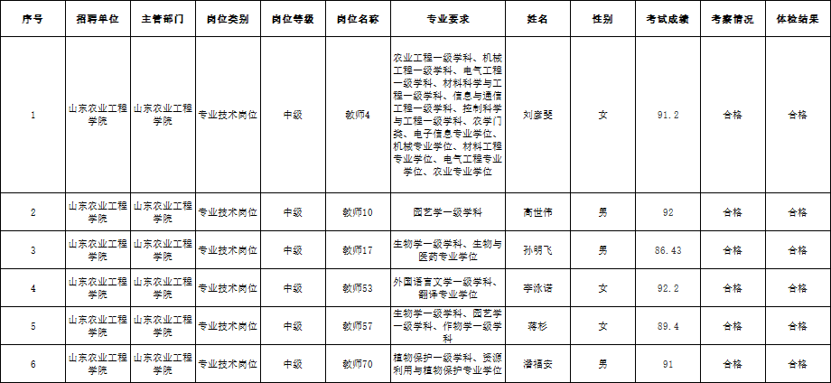 根据事业单位公开招聘有关规定和《山东农业工程学院2025年公开招聘工作人员简章(长期招聘)》等相关规定,按照岗位招聘计划,我校已组织完成了一批公开招聘(长期招聘岗位)直接考察、考察及体检等工作,现对拟聘用人员进行公示。公示期为7个工作日,自2026年1月29日至2026年2月6日(不含节假日)。公示期间,如对公示人选有异议,请及时向学校人事处反映。