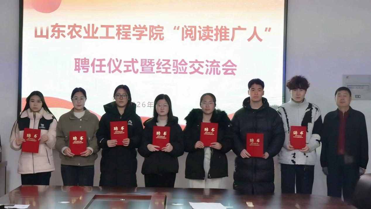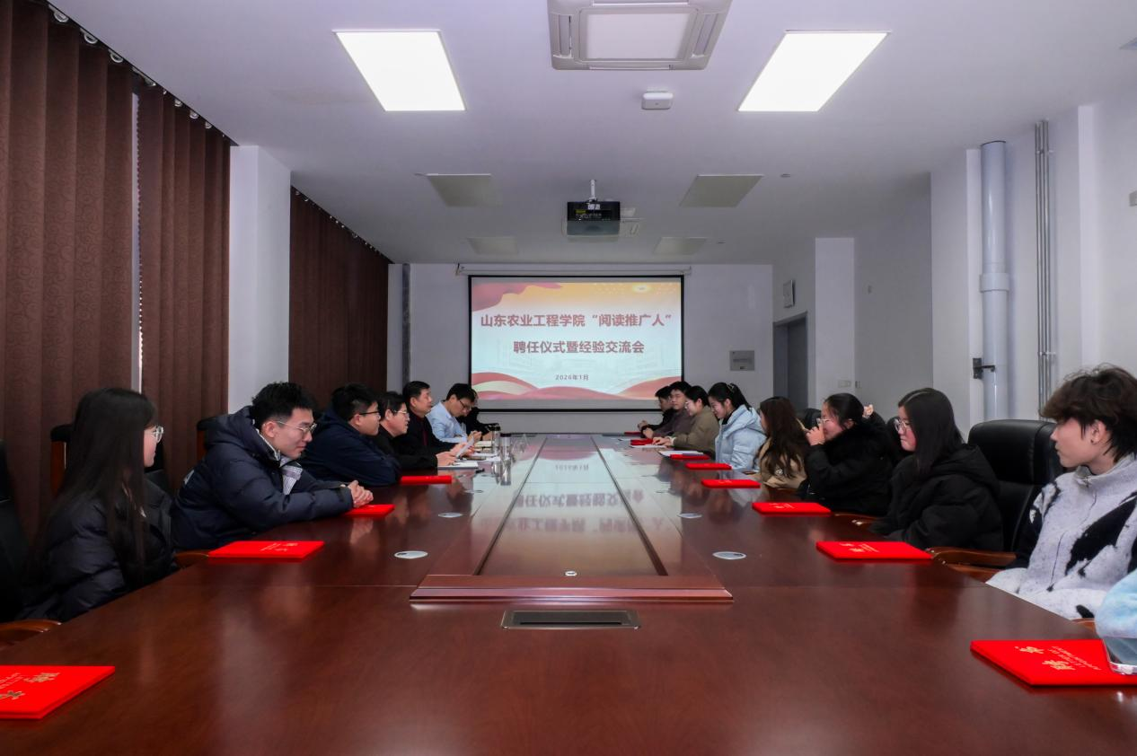 为扎实推进书香校园建设,1月6日,学校在淄博校区举办“阅读推广人”聘任仪式暨读书经验交流会。校党委委员、宣传部部长牛化振、校团委书记谷晓川及相关部门人员及20位受聘学生参加此次活动。会议由学生工作部部长陈献锋主持。