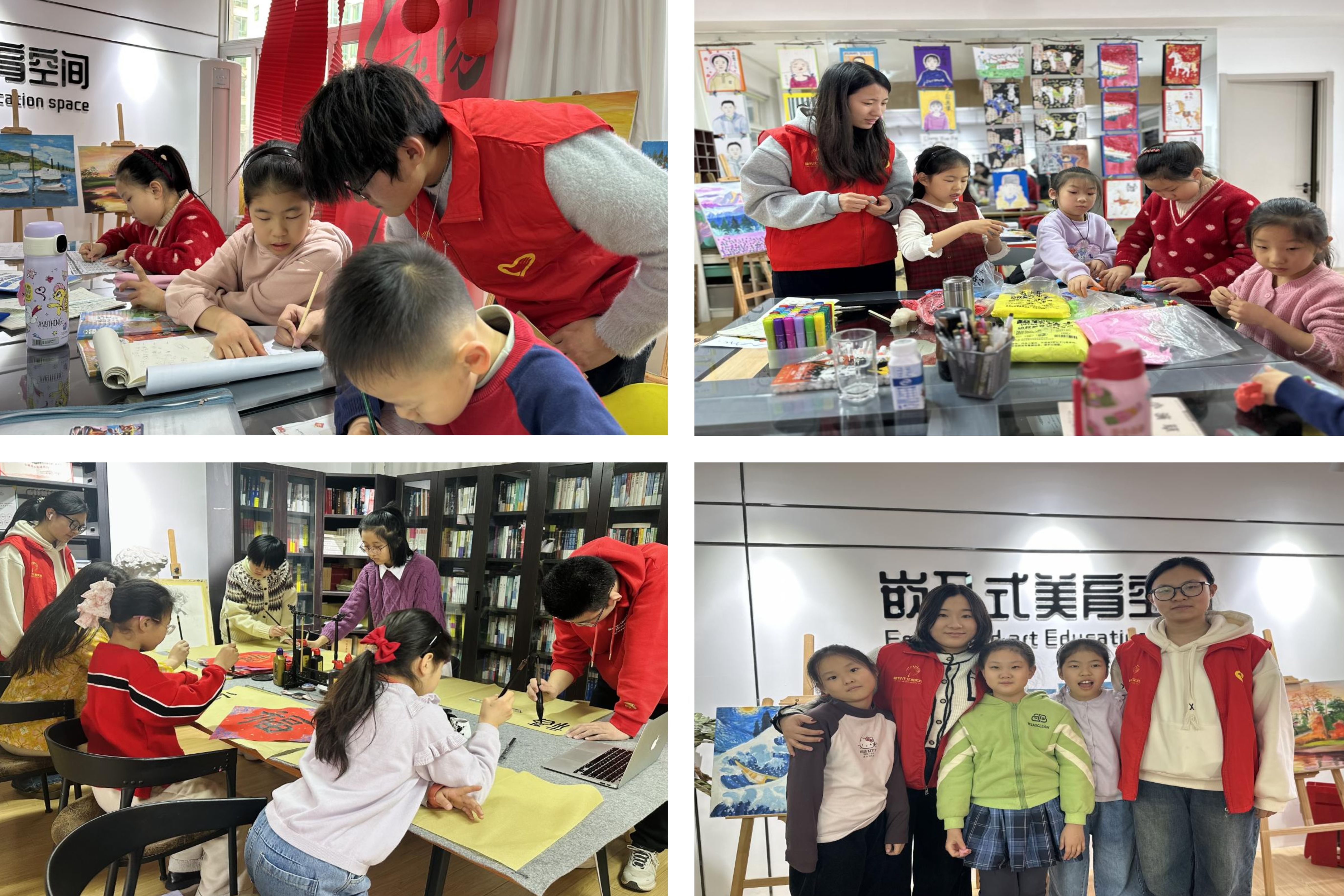 人文学院发挥文化育人、以美润心的专业优势,依托社区“嵌入式美育空间”,共同打造“美育空间”首期公益寒假托管活动,以“校社联动+志愿护航”为核心,将课业辅导、趣味陪伴与美育实践深度融合。活动期间,志愿者们为孩子们提供了个性化课业辅导,针对薄弱学科查漏补缺,并穿插趣味益智游戏、创意绘画、书法、非遗手作等课程,在陪伴中引导孩子们学习知识,感受中华优秀传统文化魅力。志愿者们以真诚与爱心坚守岗位,成为了社区青少年学业上的“小老师”和生活中的“大朋友”,既“解忧”又“增色”,受到了社区和家长们的高度赞赏。
