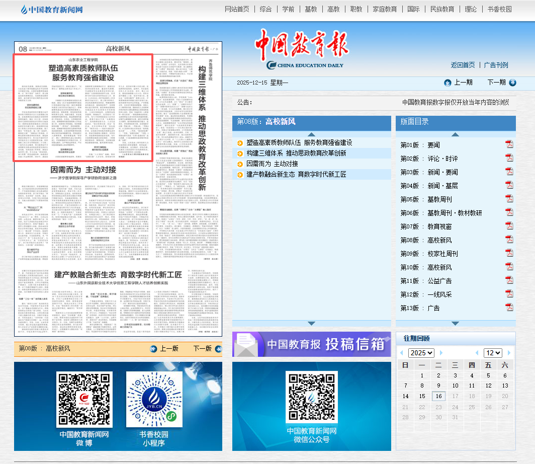 【中国教育报】山东农业工程学院:塑造高素质教师队伍 服务教育强省建设
