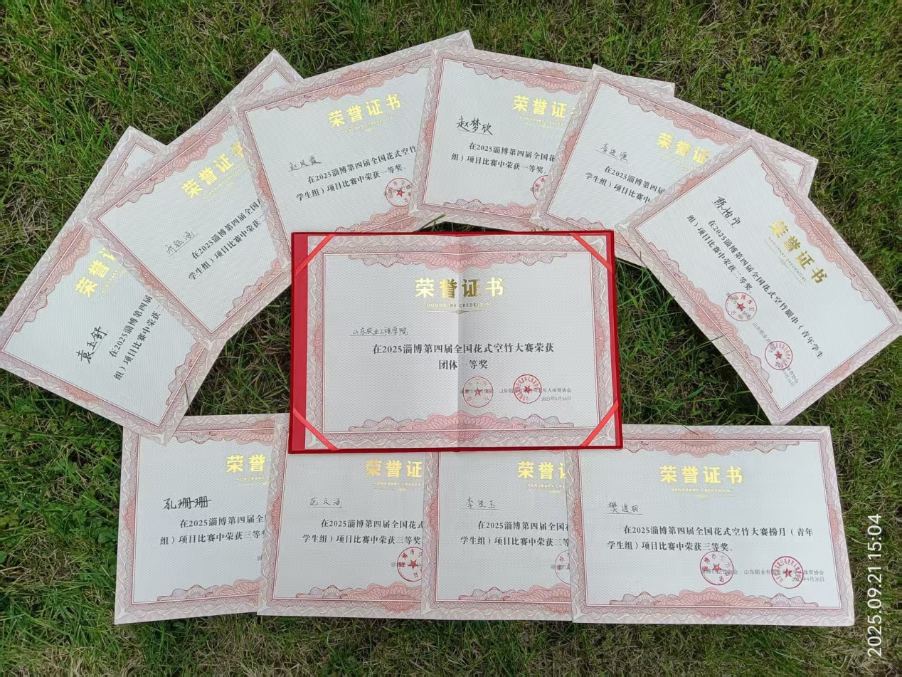 近日,“山铝杯”2025淄博第四届花式空竹大赛在山铝体育场圆满落幕。我校学子夺得团体一等奖,竞速个人赛一等奖2项、二等奖4项、三等奖4项。