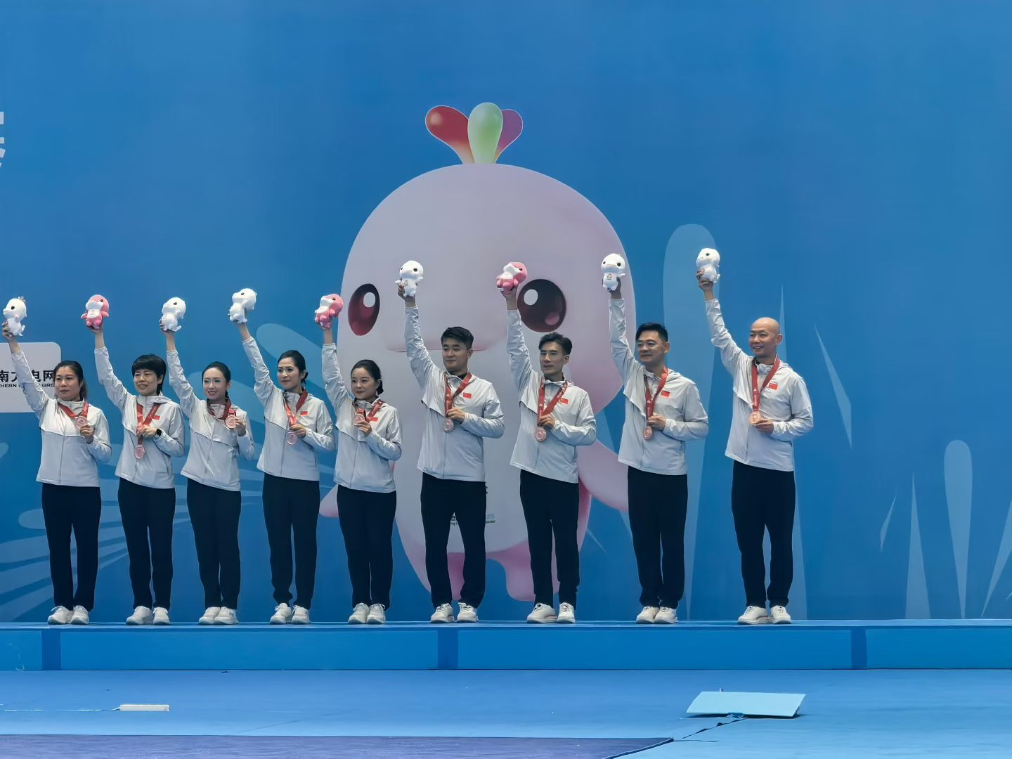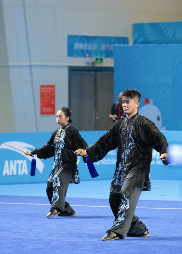 我校基础课教学部教师闫凯经过两个多月的刻苦训练,入选山东队出征此次大赛。在三十二式太极剑项目比赛中,闫凯将太极“刚柔并济、行云流水”的精髓融入每一招式之中,动作舒展大气、精准到位,兼具韵律感与规范性,既彰显出太极深厚的文化底蕴,也契合现代体育竞技的严谨要求,凭借扎实功底与稳定发挥斩获铜牌。