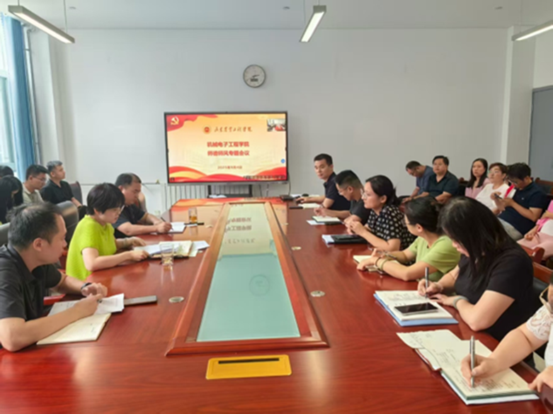 9月4日机械电子工程学院召开师德师风专题会议,会议由机械电子工程学院党总书记李艳主持,全体教师参会。会议紧扣教育强国、数字中国战略与省委部署,强调“以德为先”育人理念,为新学期建设定方向、明要求。