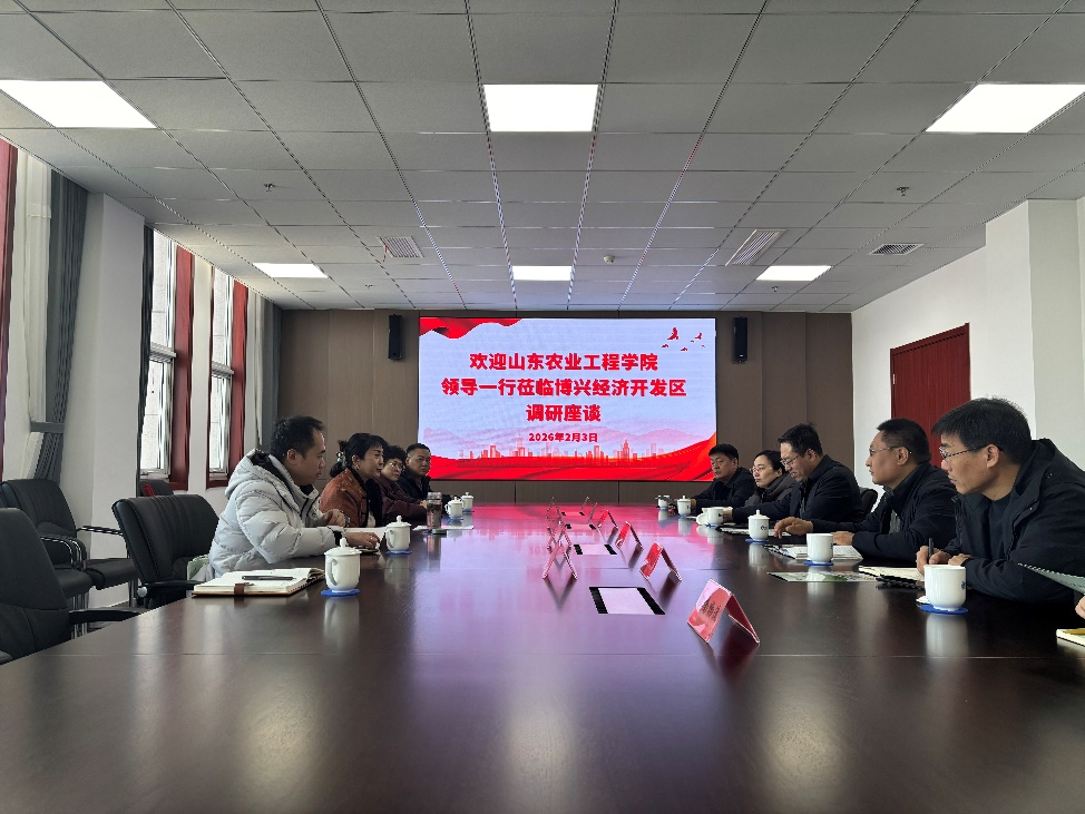 为深入贯彻落实山东省教育厅、省人力资源和社会保障厅关于实施“优企引才”定向访企拓岗促就业专项行动的工作部署,积极拓宽毕业生就业渠道,促进人才供需精准对接,2026年2月3日,山东农业工程学院党委委员、副校长杨玖庆带队,机械电子工程学院党委书记李艳、党委副书记赵侃,林业工程学院党委副书记崔凯、团总支负责人刘延娇一行,专程赴滨州市博兴经济开发区开展实地走访调研。