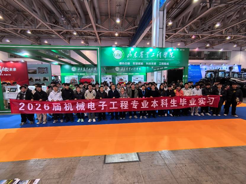 阳春三月,鸢都迎宾。3月20日-21日,2026年第20届中国(山东)国际农业机械展览会暨“潍临日”智能农机先进制造业集群发展大会在潍坊鲁台会展中心隆重举行。本届展会恰逢“十四五”收官与“十五五”谋划的关键节点,以“智联农机·联动齐鲁”为主题,汇聚了国内外农机装备领域的顶尖企业与科研力量,全景呈现了高端化、智能化、绿色化农机产业的最新成果。机械电子工程学院100余名师生参加了这次行业盛会,在“产学研展区”集中展示了学院在绿色智能农机装备领域的创新成果。