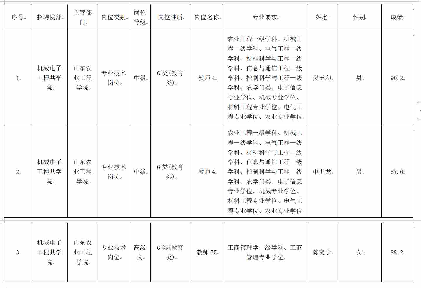 根据《山东农业工程学院2025年公开招聘工作人员简章(长期招聘)》、《山东农业工程学院2025年第五批公开招聘人员公告(长期招聘)》相关规定,按照岗位招聘计划和工作程序,我院已组织完成了2025年公开招聘(长期招聘岗位)教师4和教师75的直接考察工作,现对应聘人员考察结果进行公示。公示期为3天,自2025年11月11日至2025年11月13日。公示期间,如对公示人员有异议,请及时向学院反映,公示结束无异议,按照岗位招聘计划在考察合格的应聘人员中根据成绩由高到低进入下一环节,等额组织政审体检。