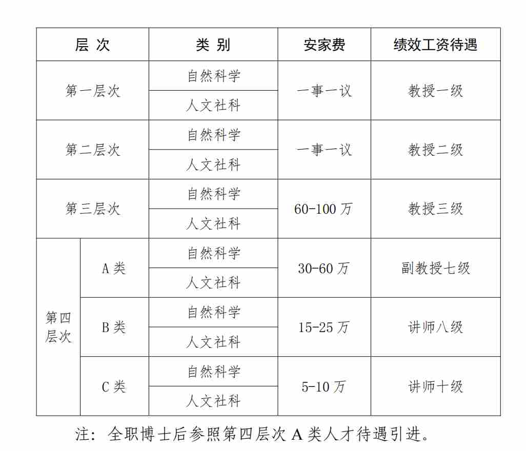 注:以上安家费均为税前金额。特殊人才,一事一议,双方协商确定,可不受此标准约束。