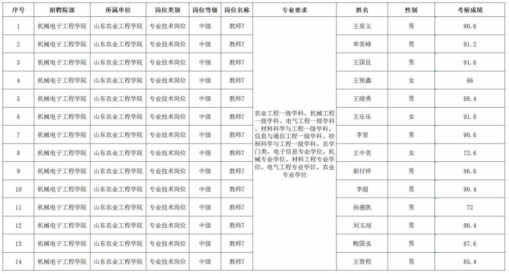 根据《山东农业工程学院2026年公开招聘人员公告(长期招聘)》相关规定,按照岗位招聘计划和工作程序,我院已组织完成了2026年公开招聘(长期招聘岗位)教师7直接考察工作,现对应聘人员考察结果进行公示。公示期为3天,自2026年2月4日至2026年2月6日。公示期间,如对公示人员有异议,请及时向学院反映,公示结束无异议,按照岗位招聘计划在考察合格的应聘人员中根据成绩由高到低进入下一环节,等额组织政审体检。