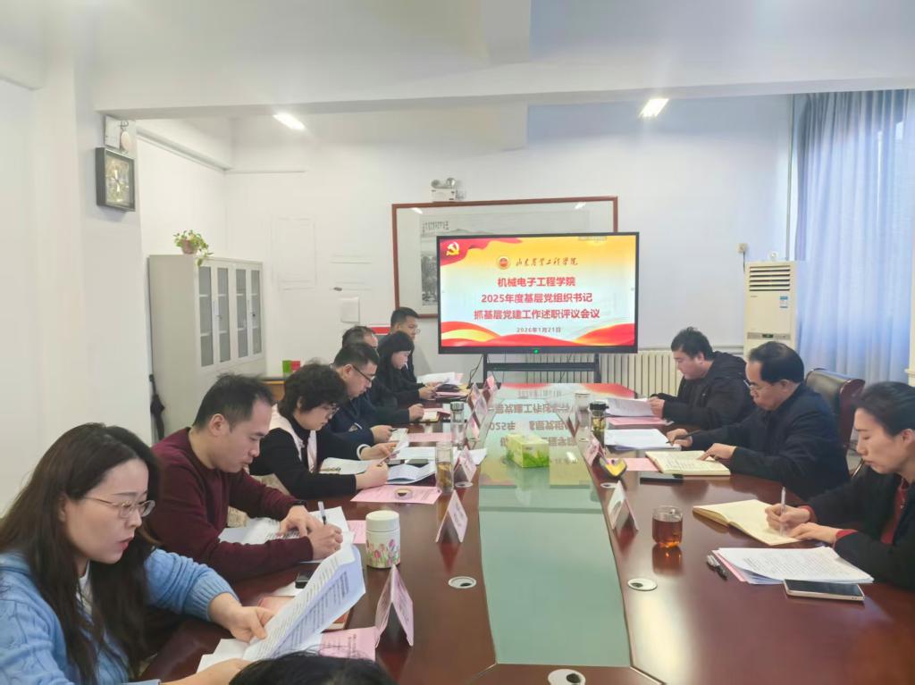 1月21日上午,机械电子工程学院在济南校区办公楼第六会议室召开2025年度基层党组织书记履行全面从严治党责任述职评议会议。校党委副书记、校长李进京,发展规划处处长朱蕾蕾,人文学院专职组织员朱锋到会指导。学院党委委员、各党支部书记及党员代表参加会议,会议由学院党委书记李艳主持。