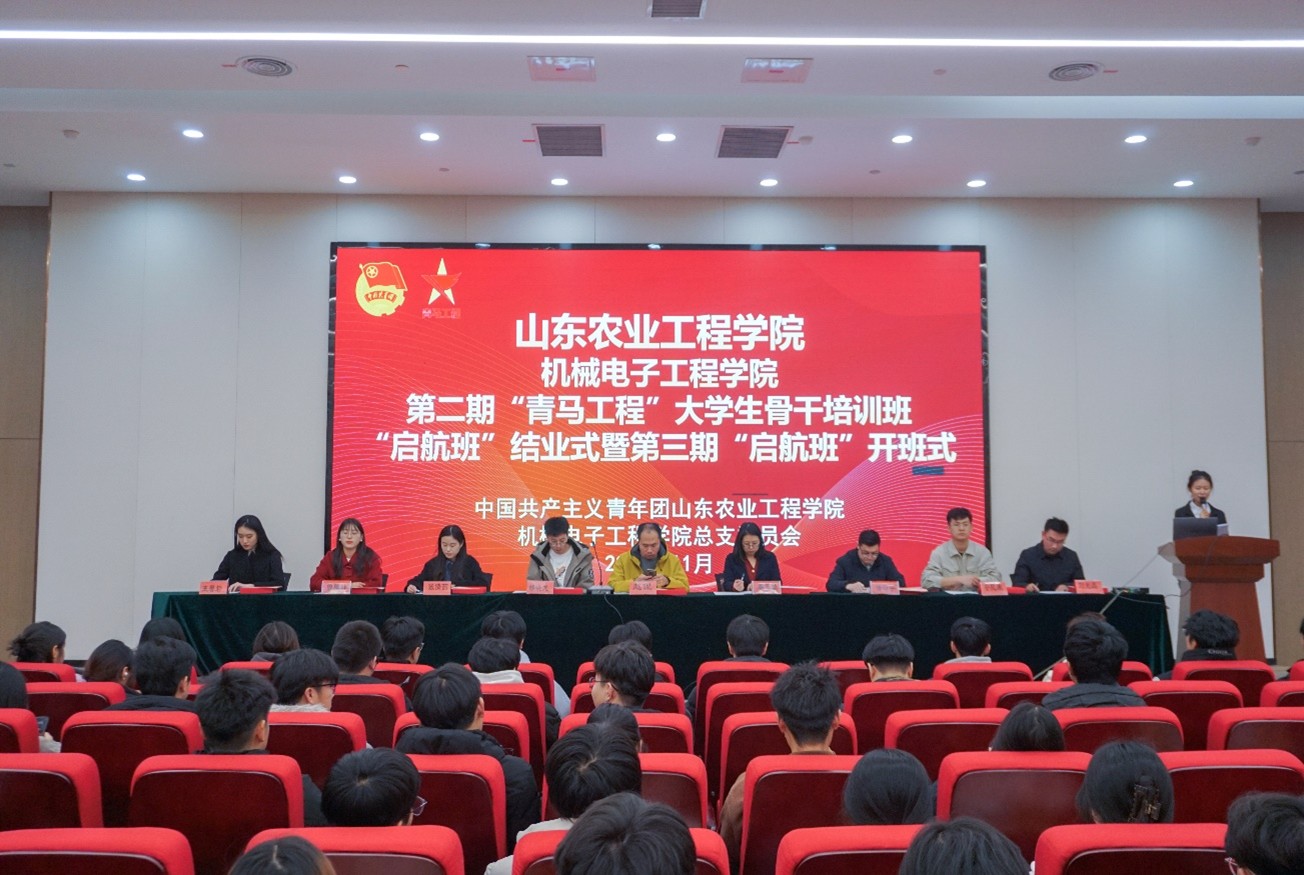 为深入学习贯彻习近平新时代中国特色社会主义思想和党的二十届三中全会精神,弘扬伟大建党精神,将广大青年汇聚在党的旗帜下,机械电子工程学院于11月19日在文法西楼A104教室举行第二期“青马工程”大学生骨干培训班“启航班”结业式暨第三期“启航班”开班式。参加本次会议的有学院党委副书记赵侃、团总支副书记秦玉莹、各辅导员老师以及青马班第二期、第三期学员。
