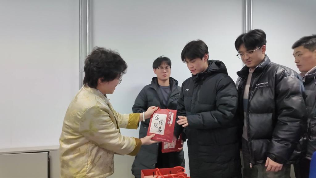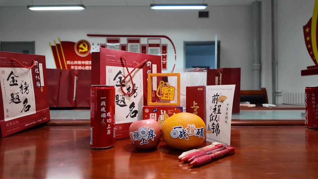 动员大会结束后,学院领导为考研学子送上寓意着“一战‘橙’硕”“‘苹’稳上岸”“金榜题名”的“上岸”加油包。这些实用又贴心的礼物,不仅为寒冬中的备考带来温暖,更传递了学院对学子们的深切关怀与美好祝愿。