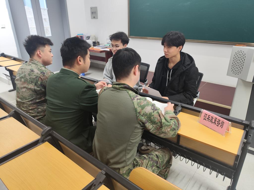 本次活动采用线下形式进行。在咨询现场,退役士兵结合最新征兵政策,针对青年学子关心的核心问题展开详细解读。从征兵条件、报名流程,到服役待遇、升学就业,再到退役安置政策,退役士兵用通俗易懂的语言和真实案例,逐一解答同学们的疑惑,帮助大家消除认知困惑。活动现场气氛热烈,同学们踊跃提问,退役士兵耐心回应大家提出的体检标准、专业匹配、军旅生活适应等问题,让同学们对军营生活有了更直观的认识。通过退役士兵的分享,同学们不仅了解了军人的责任担当,更感受到了军营生活的热血风采。