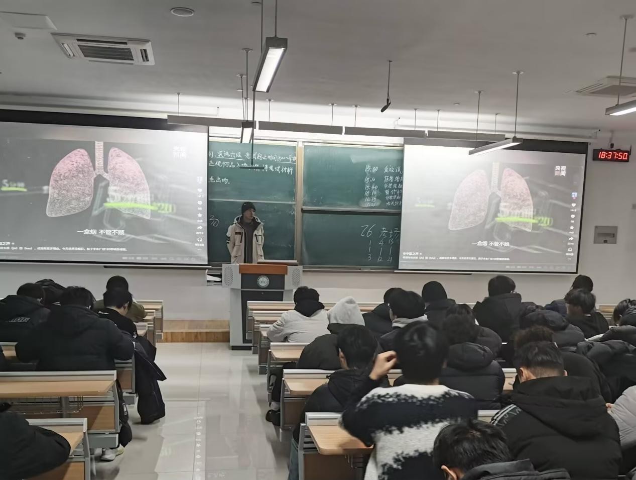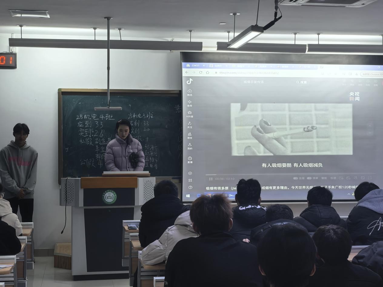 辅导员在班会中强调,青年是祖国的未来和民族的希望,拥有健康的体魄是成长成才的基础,希望全体学生能够深刻认识烟草危害,树立“健康第一”的生活理念,自觉远离烟草;同时鼓励学生积极参与校园禁烟宣传活动,带动家人、朋友共同营造无烟环境,以实际行动守护自身和他人的健康。