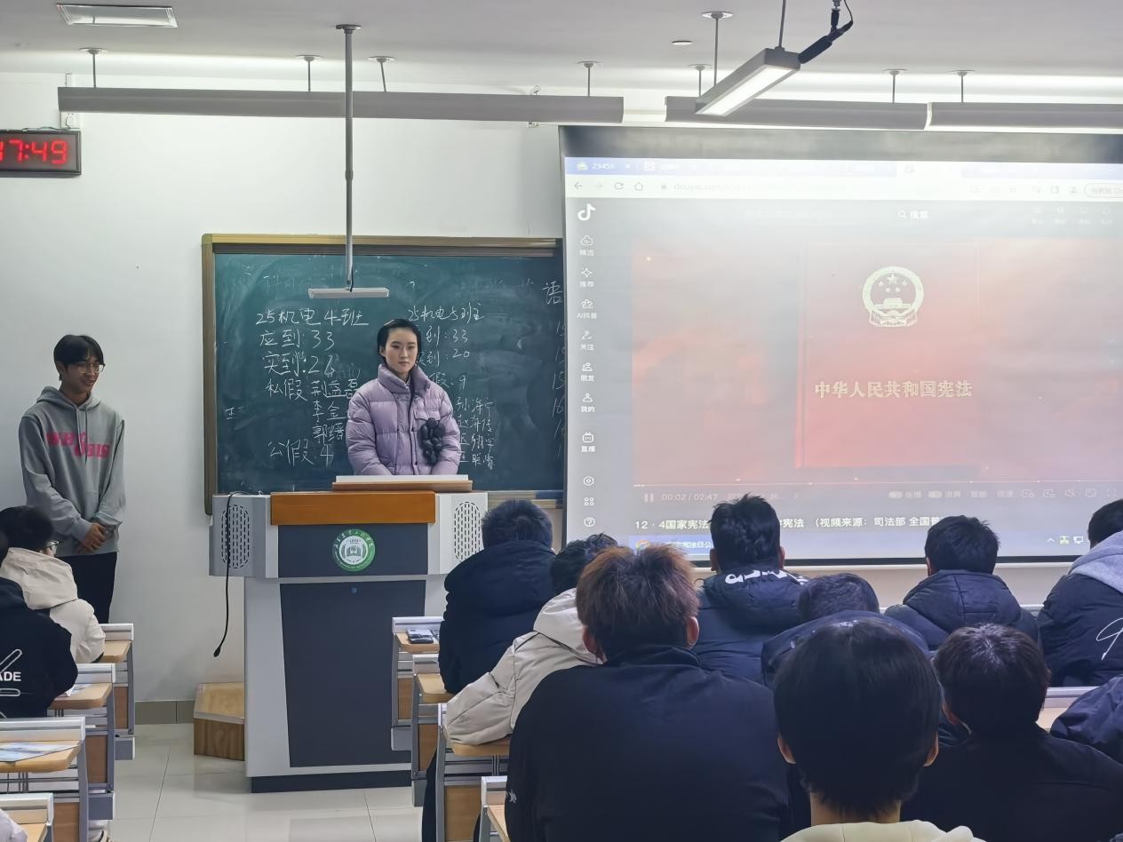 为深入学习贯彻习近平新时代中国特色社会主义思想,扎实推进2025年国家宪法日、宪法宣传周及法治宣传教育月活动落地见效,引导青年学子树立法治信仰、强化法治思维、提升法治素养,12月4日,机械电子工程学院组织各专业年级开展宪法知识科普主题班会,让宪法精神走进班级、浸润人心。