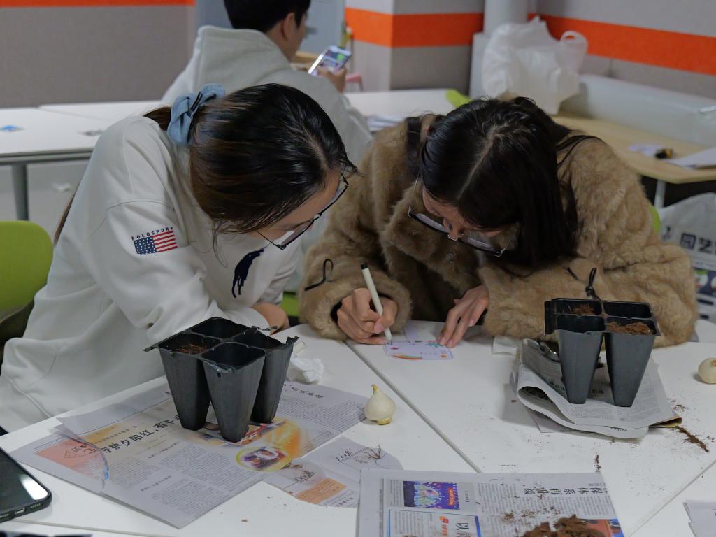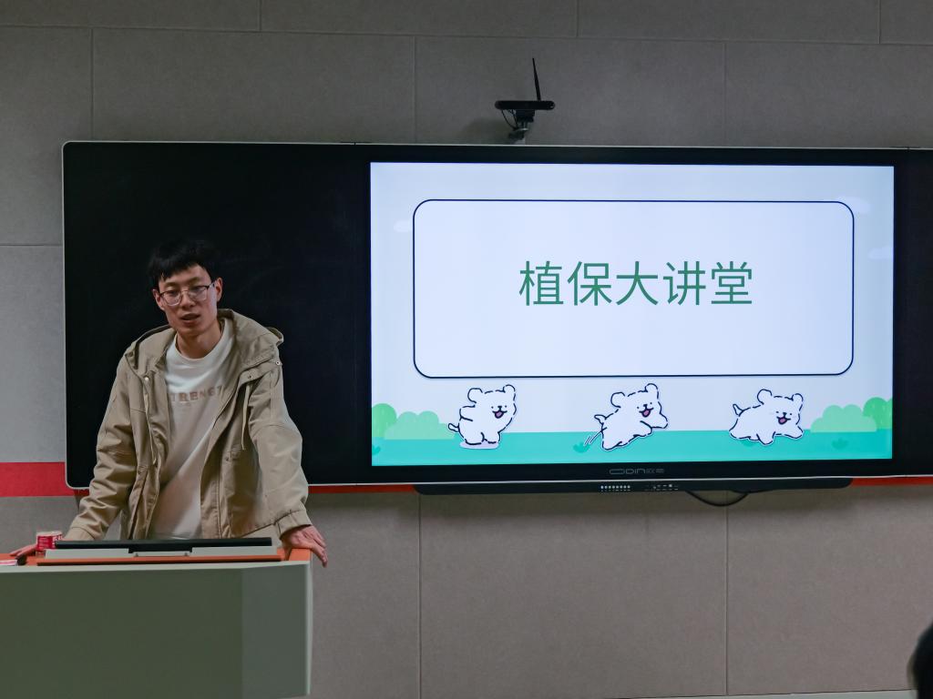 活动伊始,由植保研习社胡晓龙老师为我们开启“植保大讲堂”,带领我们系统了解有关植物养护的知识。在“春日识植·科普讲堂”上,植保研习社成员李红叶结合图鉴卡,为同学们详细讲解了郁金香、牵牛花等多种植物的基本介绍和养护要点;其次,“草木图鉴·谜语速猜”环节以抢答形式开展,设置不同难度的植物谜题,同学们踊跃作答,现场氛围热烈;随后是“萌芽工坊·播种速造”环节,参与者两人一组,在工作人员的指导下完成播种操作;最后同学们在“植心守护·承诺速签”环节,现场填写养护卡,写下了自己的养护寄语与承诺,并将亲手栽种的绿植带回进行悉心养护。