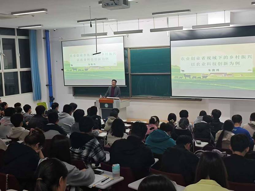 为深化师生对乡村振兴战略与农业科技创新的认知,助力农业领域人才培养与科研探索,10月15我校特邀淄博禾丰种业科技股份有限公司董事长兼总经理朱俊科教授开展了以“农业创业者视域下的乡村振兴—以农业科技创新为例”为题的专题讲座。为我校师生带来了一场关于农业前沿动态与乡村发展实践的深度分享。