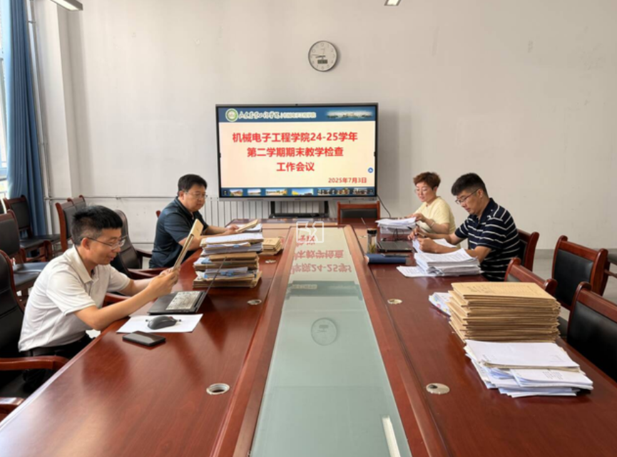为了全面了解学院本学期教学工作开展情况,发现教学过程中的典型事迹与存在的主要教学问题,为后续教学工作优化提供依据。机械电子工程学院于7月3日在理工东B304开展2024-2025-2学期期末教学检查工作,学院教学督导组、各教研室主任全程参与。