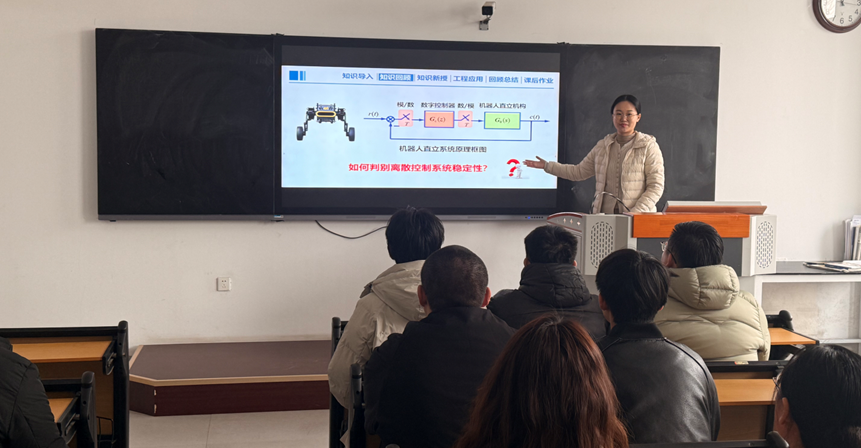 近日,在2025年度校级青年教师教学比赛中获二等奖的常铭老师,在理工东B102举办《自动控制理论A》公开观摩课。